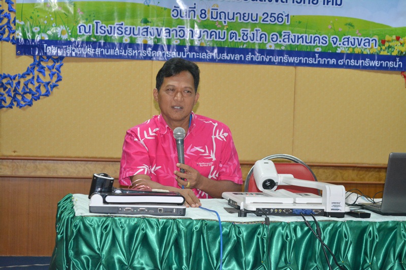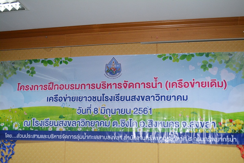 วันที่ 8 มิถุนายน 2561 นายสุทัศน์ นุ้ยเล็ก ผู้อำนวยการส่วนพัฒนาและฟื้นฟูแหล่งน้ำ รักษาราชการแทนผู้อำนวยการสำนักงานทรัพยากรน้ำภาค 8 มอบหมายให้นายสมพร พรหมทอง นักวิเคราะห์นโยบายและแผนชำนาญการ ปฏิบัติหน้าที่ราชการแทนผู้อำนวยการส่วนประสานและบริหารจัดการลุ่มน้ำทะเลสาบสงขลา พร้อมเจ้าหน้าที่ ดำเนินการจัดอบรมโครงการบริหารจัดการน้ำ (เครือข่ายเดิม) เครือข่ายเยาวชนโรงเรียนสงขลาวิทยาคม ต.ชิงโค อ.สิงหนคร จ.สงขลา โดยมีวัตถุประสงค์ ดังนี้