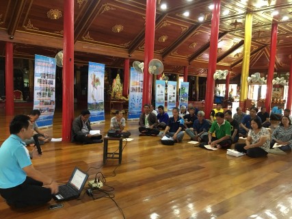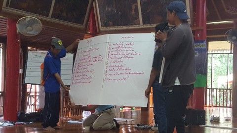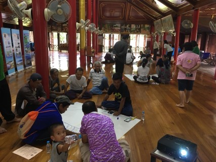 (เวทีชาวบ้าน) ณ วัดเมืองปอน บ้านเมืองปอน หมู่ 1 ตำบลเมืองปอน อำเภอขุนยวม จังหวัดแม่ฮ่องสอน สำนักงานเลขาฯ ได้ทบทวนยุทธศาสตร์การบริหารจัดการน้ำระดับชาติและระดับพื้นที่ให้กลุ่มผู้เข้าร่วมได้รับทราบ รวมทั้งข้อมูลสถานการณ์น้ำในปัจจุบัน โดยกิจกรรมครั้งนี้ สำนักงานเลขาฯ ได้เน้นกิจกรรมการมีส่วนร่วมของแกนนำกลุ่มผู้ใช้น้ำ แกนนำชุมชน จัดทำแผนที่น้ำในชุมชน (water map) นำเสนอประเด็นปัญหา ความต้องการของชุมชนในพื้นที่ลุ่มน้ำ ซึ่งแกนน้ำกลุ่มผู้ใช้น้ำและผู้มีส่วนได้เสียในพื้นที่ลุ่มน้ำได้จัดลำดับความสำคัญของปัญหาและความต้องการเพื่อนำประเด็นเร่งด่วนเหล่านี้ไปสู่การบริหารจัดการทรัพยากรน้ำในพื้นที่