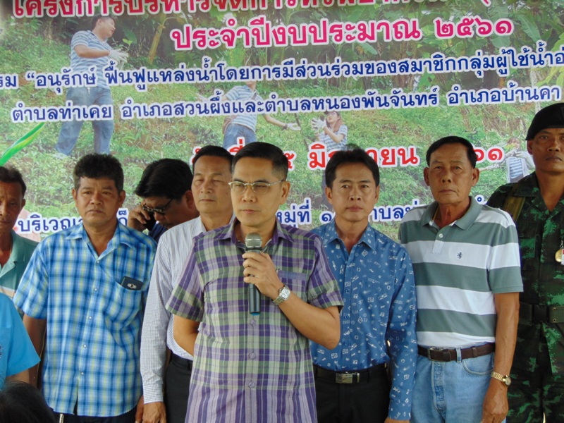 เมื่อวันศุกร์ที่ ๑๕ มิถุนายน ๒๕๖๑ สำนักงานทรัพยากรน้ำภาค ๗ โดยส่วนประสานและบริหารจัดการลุ่มน้ำแม่กลอง ร่วมกับกลุ่มผู้ใช้น้ำอ่างเก็บน้ำรางกระชาย จัดโครงการบริหารจัดการทรัพยากรน้ำ (เครือข่ายเดิม) ประจำปีงบประมาณ ๒๕๖๑ กิจกรรม “อนุรักษ์ ฟื้นฟูแหล่งน้ำโดยการมีส่วนร่วมของสมาชิกกลุ่มผู้ใช้น้ำอ่างเก็บน้ำรางกระชาย” ตำบลท่าเคย อำเภอสวนผึ้งและตำบลหนองพันจันทร์ อำเภอบ้านคา จังหวัดราชบุรี โดยได้รับเกียรติจาก นายฑรัส เอี่ยมสะอาด นายอำเภอสวนผึ้ง เป็นประธานพิธีเปิด นางลำยอง เจริญชนม์ ผู้อำนวยการส่วนประสานและบริหารจัดการลุ่มน้ำแม่กลอง กล่าวรายงานวัตถุประสงค์โครงการฯ
