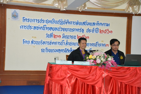 เมื่อวันที่ 21 มิถุนายน 2561 นายพิสิทธิ์ ทิพย์โอสถ ผู้อำนวยการส่วนพัฒนาและฟื้นฟูแหล่งน้ำ รักษาราชการแทน ผู้อำนวยการสำนักงานทรัพยากรน้ำภาค 3 มอบหมายให้ นายเชาว์ สวัสดิ์พุทรา ผู้อำนวยการส่วนบริหารจัดการน้ำ จัดประชุมเชิงปฏิบัติการส่งเสริมและติดตามการประหยัดน้ำของหน่วยงานภาครัฐประจำปี 2561 ณ โรงแรมอุดรโฮเต็ล อำเภอเมือง จังหวัดอุดรธานี โดยมี นายชาญยุทธ หมู่หาญ ผู้อำนวยการส่วนวิชาการ เป็นประธานเปิดงาน ในการจัดประชุมครั้งนี้ มีวัตถุประสงค์เพื่อการส่งเสริมการประหยัดน้ำ สร้างจิตสำนึกให้มีส่วนร่วมในการประหยัดน้ำของหน่วยงานภาครัฐและภาคเอกชนเพื่อให้รู้คุณค่าในการใช้น้ำที่มีอย่างจำกัด
