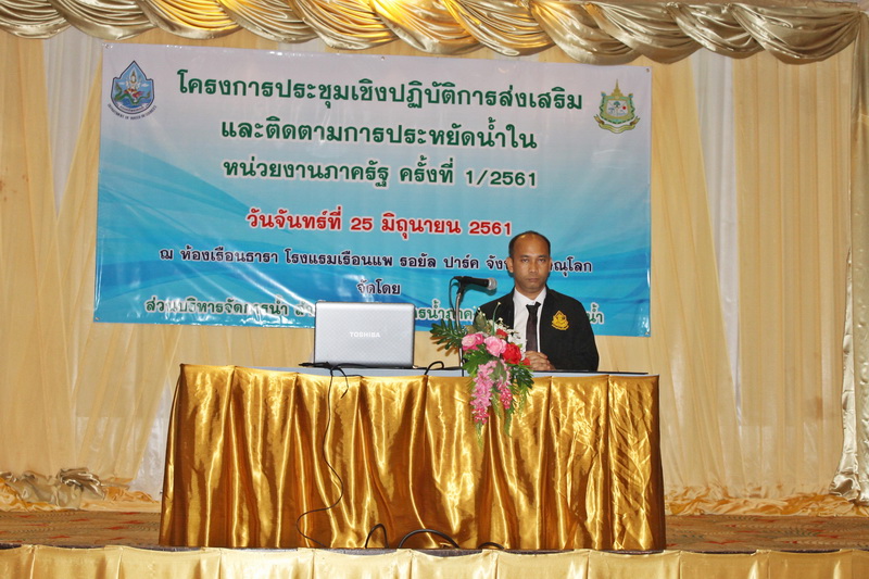 วันนี้ (25 มิถุนายน 2561) นายสุทธิพล เอี่ยมประเสริฐกุล ผู้อำนวยสำนักงานทรัพยากรน้ำภาค 9 ได้มอบหมายให้ส่วนบริหารจัดการน้ำ จัดประชุมเชิงปฏิบัติการโครงการส่งเสริมและติดตามการประหยัดน้ำของหน่วยงานภาครัฐ ประจำปี 2561 ณ โรงแรมเรือนแพ อำเภอเมือง จังหวัดพิษณุโลก มีวัตถุประสงค์เพื่อส่งเสริมการประหยัดน้ำ ให้ตระหนักรู้และสร้างจิตสำนึก รวมถึงการสร้างความรู้ ความเข้าใจในแนวทางและขั้นตอนการปฏิบัติงาน โดยนำไปประยุกต์ใช้อย่างถูกต้อง และเพื่อติดตามผลสัมฤทธิ์การปฏิบัติงานของโครงการ โดยมีผู้แทนจากสำนักบริหารจัดการน้ำ กรมทรัพยากรน้ำ เป็นวิทยากรในการสร้างความรู้ความเข้าใจให้กับผู้เข้าร่วมโครงการฯ ซึ่งประกอบด้วย ข้าราชการและเจ้าหน้าที่หน่วยงานภาครัฐ ที่มีสำนักงานตั้งอยู่ในเขตพื้นที่รับผิดชอบของสำนักงานทรัพยากรน้ำภาค 9