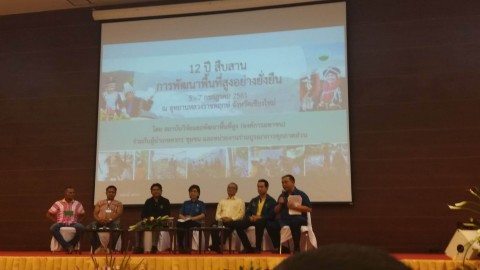 ในการนี้ ผู้อำนวยการสถาบันวิจัยและพัฒนาพื้นที่สูง (นางสาวรุจิรา ริมผดี) กล่าวเปิดงานและเสวนารับฟัง แลกเปลี่ยน เรียนรู้ จากผู้นำเกษตรกร พร้อมด้วยการบรรยายพิเศษเรื่อง "ความสำคัญของผู้นำเกษตรกรกับการวิจัยและพัฒนาพื้นที่สูงอย่างยั่งยืน" โดย นายอำพน กิตติอำพน ประธานกรรมการสถาบัน รวมทั้งการนำเสนอ “แรงบันดาลใจ สร้างสุขให้ชุมชน” โดยผู้นำเกษตรกร สวพส. ซึ่งสรุปหลักการแนวทางที่เกี่ยวข้อง คือ การบริหารจัดการน้ำในพื้นที่สูงที่เป็นปัจจัยหลักในการดำรงชีวิต การพิทักษ์ป่าไม้ พืชพรรณปลูกชีวิตให้ยั่งยืน และเศรษฐกิจพอเพียงสืบชีวิตให้มั่นคง โดยต้องเข้าใจ เข้าถึง และพัฒนาเพื่อนำสู่ชีวิตที่มั่นคงและยั่งยืน