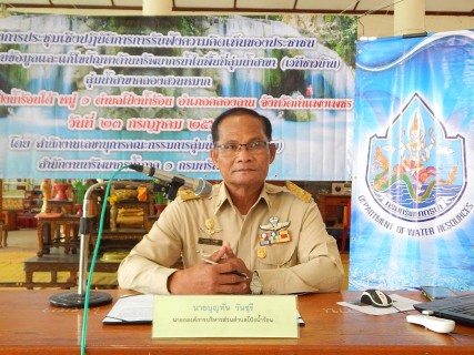 เป็นประธานในพิธี มีผู้เข้าร่วมประชุม จำนวน 72 คน การประชุมครั้งนี้มีวัตถุประสงค์ เพื่อให้ผู้เข้าร่วมประชุม ได้มีส่วนร่วมในการร่วมคิด ร่วมตัดสินใจ และร่วมเสนอแนะประเด็นสภาพปัญหาเชิงพื้นที่ และแนวทางการแก้ไข เพื่อให้ได้มาซึ่งแผนงานโครงการ ที่จะสามารถแก้ไขปัญหาด้านต่างๆ ให้สอดคล้องกับยุทธศาสตร์การบริหารจัดการทรัพยากรน้ำ ทั้ง 6 ด้าน และตรงกับความต้องการของพื้นที่ ได้อย่างมีประสิทธิภาพ และยั่งยืน พร้อมทั้งได้ทำการประชาสัมพันธ์โครงการก่อสร้างระบบกระจายน้ำด้วยพลังงานแสงอาทิตย์