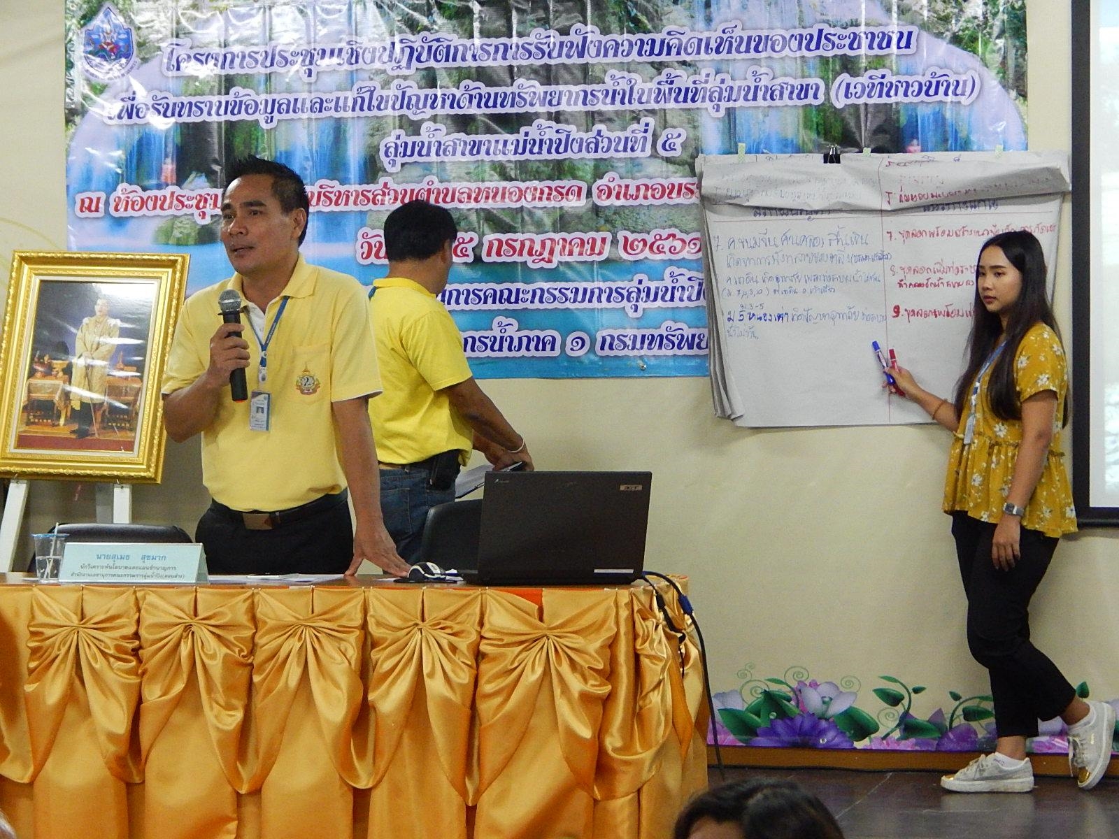 สทภ.1 ส่วนประสานและบริหารจัดการลุ่มน้ำปิงตอนล่างได้จัดประชุมเชิงปฏิบัติการรับฟังความคิดเห็นของประชาชน เพื่อรับทราบข้อมูลและแก้ไขปัญหาด้านทรัพยากรน้ำ ในพื้นที่ลุ่มน้ำสาขาแม่น้ำปิงส่วนที่ 5 (เวทีชาวบ้าน) ประจำปี 2561