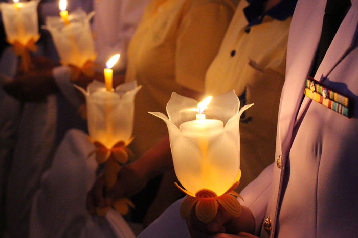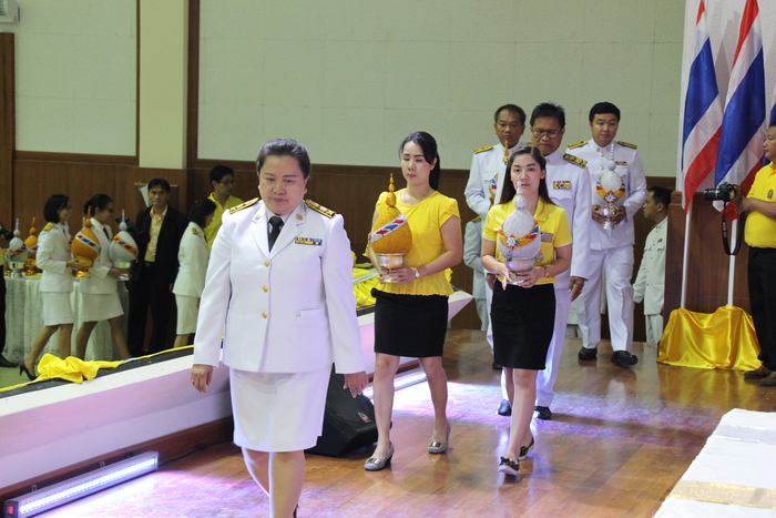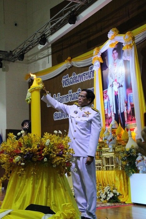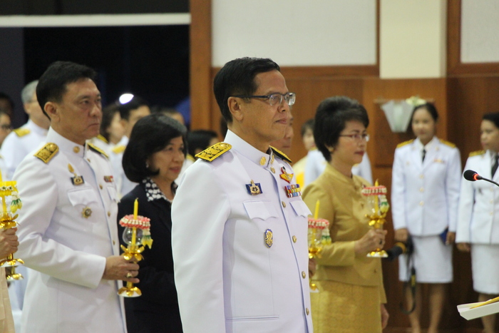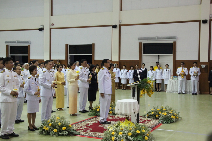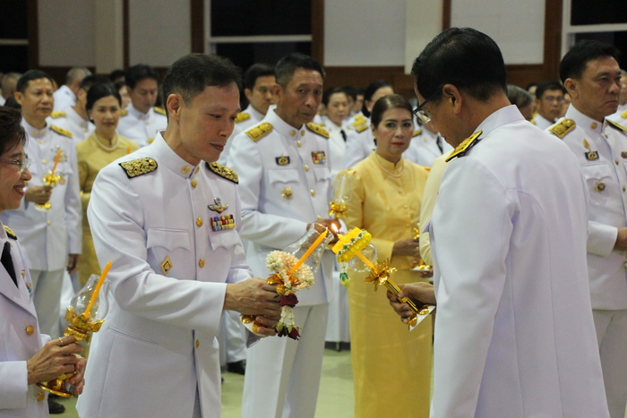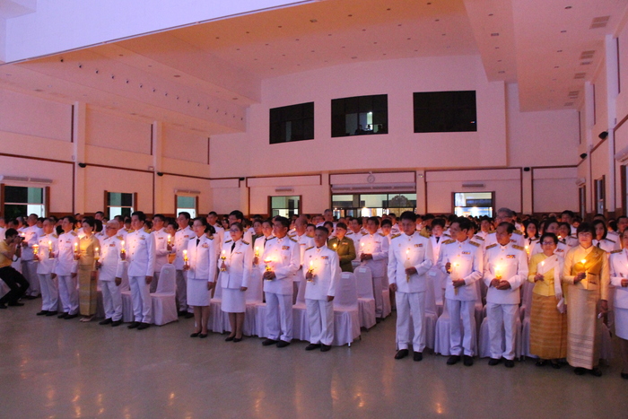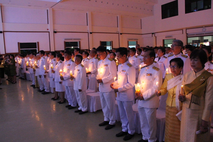 ภาคค่ำร่วมพิธีถวายเครื่องราชสักการะ (พานพุ่มทอง-พานพุ่มเงิน) และพิธีจุดเทียนถวายพระพรชัยมงคล โดยมี