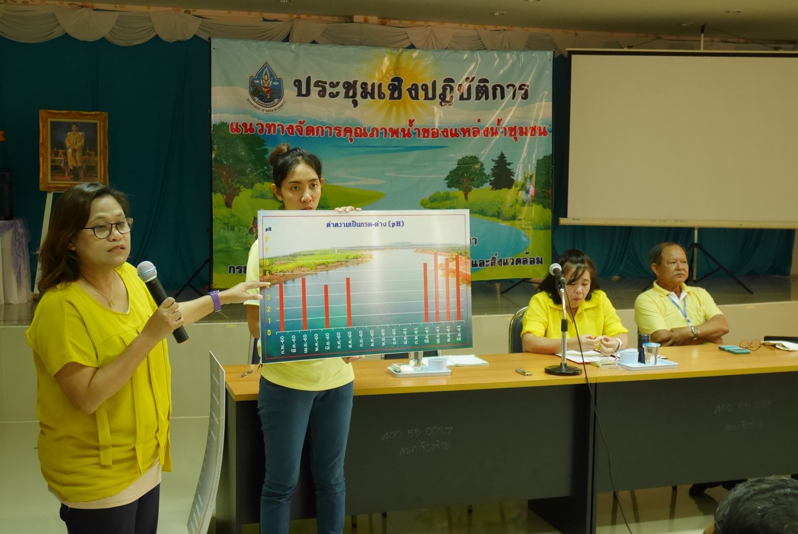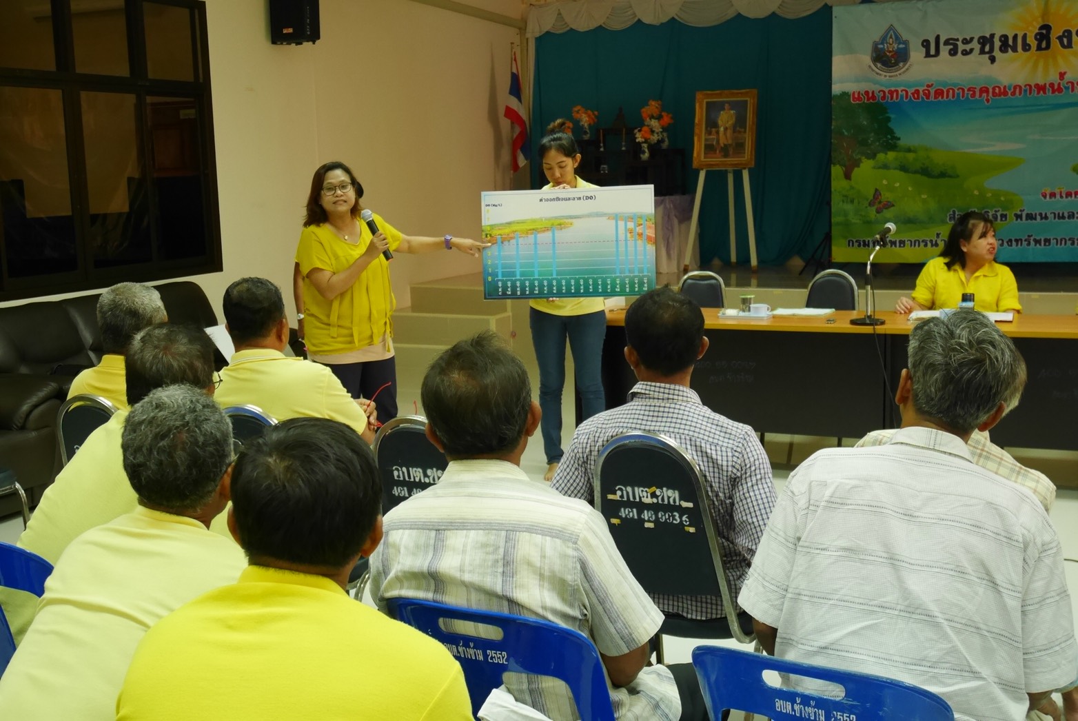 สำนักวิจัย พัฒนาและอุทกวิทยา กรมทรัพยากรน้ำ จัดประชุมเชิงปฏิบัติการแนวทางจัดการคุณภาพน้ำของแหล่งน้ำชุมชน ณ เทศบาลตำบลช้างข้าม ต.ช้างข้าม อ.นายายอาม จ.จันทบุรี ซึ่งเป็นส่วนหนึ่งของโครงการวิจัย เรื่อง การประเมินและตรวจติดตามคุณภาพน้ำผิวดินของแหล่งน้ำชุมชนในพื้นที่เสี่ยงต่อผลกระทบจากการเปลี่ยนแปลงสภาพภูมิอากาศ: กรณีศึกษาพื้นที่ลุ่มน้ำชายฝั่งทะเลตะวันออก การประชุมครั้งนี้ มีวัตถุประสงค์เพื่อนำเสนอผลการตรวจติดตามคุณภาพน้ำและระดมความคิดเห็นเกี่ยวกับแนวทางบริหารจัดการหนองพลงใหญ่ โดยได้รับเกียรติจากนางสาว สุปราณี รุ่งหิรัญวิโรจน์ ผู้เชี่ยวชาญเฉพาะด้านวิจัยและพัฒนาทรัพยากรน้ำ เป็นประธานการประชุมเชิงปฏิบัติการ ในวันพุธที่ 25 กรกฎาคม 2561 ผู้เข้าประชุม ประกอบด้วย นายกเทศมนตรีตำบลช้างข้าม และเจ้าหน้าที่เทศบาลตำบลช้างข้าม ผู้อำนวยการส่วนอุทกวิทยา สำนักงานทรัพยากรน้ำภาค 6 ผู้แทนส่วนประสานและบริหารจัดการลุ่มน้ำชายฝั่งทะเลตะวันออก กลุ่มผู้ใช้น้ำหนองพลงใหญ่ ข้าราชการและเจ้าหน้าที่สำนักวิจัยฯ จำนวน 40 คน