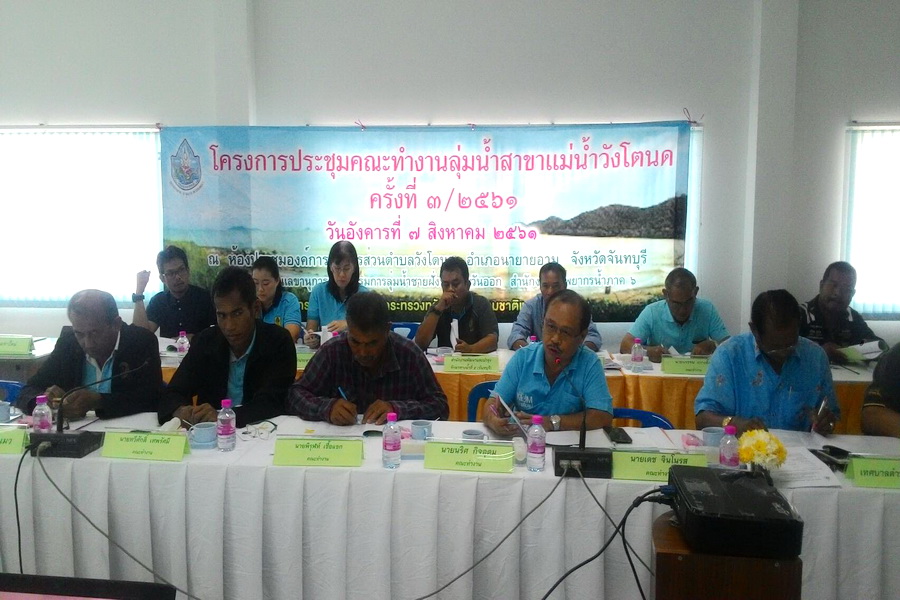 เมื่อวันอังคารที่ 7 สิงหาคม 2561 นายสมฤทธิ์ วิไลพรรัตนา ผู้อำนวยการสำนักงานทรัพยากรน้ำภาค 6 มอบหมายให้ ส่วนประสานและบริหารจัดการลุ่มน้ำชายฝั่งทะเลตะวันออก ดำเนินการจัดประชุมคณะทำงานลุ่มน้ำสาขาแม่น้ำวังโตนด ครั้งที่ 3/2561 ณ ห้องประชุมองค์การบริหารส่วนตำบลวังโตนด อำเภอนายายอาม จังหวัดจันทบุรี โดยมี ผศ.เจริญ ปิยารมย์ เป็นประธานการประชุม ผู้เข้าร่วมประชุมฯ ประกอบด้วย คณะทำงานฯ และหน่วยงานราชการที่เกี่ยวข้อง จำนวน 53 คน มีวัตถุประสงค์เพื่อรับทราบรายงานการคาดการณ์สภาพอากาศ สถานการณ์น้ำและความก้าวหน้าโครงการพัฒนาแหล่งน้ำในพื้นที่ลุ่มน้ำสาขาแม่น้ำวังโตนด และการเตรียมความพร้อมรับสถานการณ์น้ำหลาก ปี 2561 ในพื้นที่จังหวัดจันทบุรี พร้อมร่วมกันพิจารณา (ร่าง) แผนยุทธศาสตร์การบริหารจัดการทรัพยากรน้ำ และแผนปฏิบัติการทรัพยากรน้ำปีงบประมาณ 2563 และกำหนดแนวทางการบริหารจัดการทรัพยากรน้ำในพื้นที่ลุ่มน้ำสาขาแม่น้ำวังโตนด โดยในการประชุมครั้งนี้ คณะทำงานฯ และผู้เข้าร่วมประชุมได้เรียนรู้วิธีการเข้าถึงข้อมูลเรดาร์ตรวจอากาศจากโทรศัพท์มือถือ ผ่านแอปพลิเคชั่นรายงานสภาพอากาศ โดยการแนะนำของผู้อำนวยการสถานีอุตุนิยมวิทยาจันทบุรีด้วย