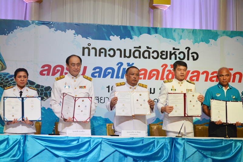 วันที่ 10 สิงหาคม 2561 เวลา 09.30 – 12.00 น. นายสุทัศน์ นุ้ยเล็ก ผู้อำนวยการส่วนพัฒนาและฟื้นฟูแหล่งน้ำ รักษาราชการแทนผู้อำนวยการสำนักงานทรัพยากรน้ำภาค 8 มอบหมายให้นางจันทิรา สุขศิวานันท์ ผู้อำนวยการส่วนอำนวยการ พร้อมเจ้าหน้าที่สำนักงานทรัพยากรน้ำภาค 8 เข้าร่วมพิธีลงนามบันทึกข้อตกลงความร่วมมือ “ประชารัฐทำความดีด้วยหัวใจ ลดรับ ลดให้ ลดใช้ถุงพลาสติก” ณ ห้องประชุม ดิ เอมเพรส ฮอลล์ อาคารสยามวินเซอร์ ศูนย์การค้าสยามนครินทร์ คอมเพล็กซ์ หาดใหญ่ อ.หาดใหญ่ จ.สงขลา โดยนายสมชัย มาเสถียร รองปลัดกระทรวงทรัพยากรธรรมชาติและสิ่งแวดล้อม เป็นประธานในพิธี เพื่อรณรงค์ส่งเสริมให้เกิดความตระหนัก และมีส่วนร่วมในการลดปริมาณการใช้ถุงพลาสติก การเลิกใช้พลาสติกหุ้มฝาขวดน้ำดื่มและเครื่องดื่ม และการเก็บรวบรวมของเสียอันตรายจากชุมชนในจังหวัดสงขลา รวมทั้งลดปริมาณการใช้ถุงพลาสติกในสถาบันอุดมศึกษา และหน่วยงานสังกัดกระทรวงทรัพยากรธรรมชาติและสิ่งแวดล้อมในจังหวัดสงขลา สตูล ปัตตานี ยะลา และนราธิวาส ถวายเป็นพระราชกุศลแด่สมเด็จพระนางเจ้าสิริกิติ์ พระบรมราชินีนาถ ในรัชกาลที่ 9 เนื่องในโอกาสมหามงคลเฉลิมพระชนมพรรษา 86 พรรษา 12 สิงหาคม 2561