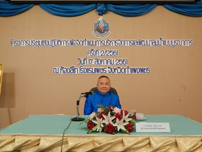 วันที่ 17 สิงหาคม 2561 สำนักงานทรัพยากรน้ำภาค 1 โดยส่วนประสานและบริหารจัดการลุ่มน้ำปิงตอนล่างได้จัดการประชุมเชิงปฏิบัติการเพื่อการจัดทำแผนบริหารจัดการและพัฒนาลุ่มน้ำแบบบูรณาการ ครั้งที่ 2/2651 ณ ห้องลิไท โรงแรมเพชร ตำบลในเมือง อำเภอเมืองกำแพงเพชร จังหวัดกำแพงเพชร โดยได้รับเกียรติจาก นายธัชชัย สีสุวรรณ ผู้ว่าราชการจังหวัดกำแพงเพชร เป็นประธานในพิธีเปิด มีผู้เข้าร่วมประชุมประกอบไปด้วยผู้แทนหน่วยงานราชการที่เกี่ยวข้ององค์กรปกครองส่วนท้องถิ่น คณะทำงานลุ่มน้ำสาขา คณะทำงานลุ่มน้ำระดับจังหวัด เครือข่ายลุ่มน้ำ และองค์กรลุ่มน้ำในพื้นที่ลุ่มน้ำปิงตอนล่าง จำนวน 101 คน ในการจัดประชุมเชิงปฏิบัติการฯ ให้ความรู้เรื่องผังความเชื่อมโยงยุทธศาสตร์ในลุ่มน้ำ ประเด็นเป้าหมายทั้ง 6 ยุทธศาสตร์ เพื่อเป็นแนวทางการจัดทำแผนงาน/โครงการ ปี พ.ศ.2563 การขออนุญาตเจาะบ่อและใช้น้ำบาดาล และแนวทางการจัดการน้ำเสียชุมชน