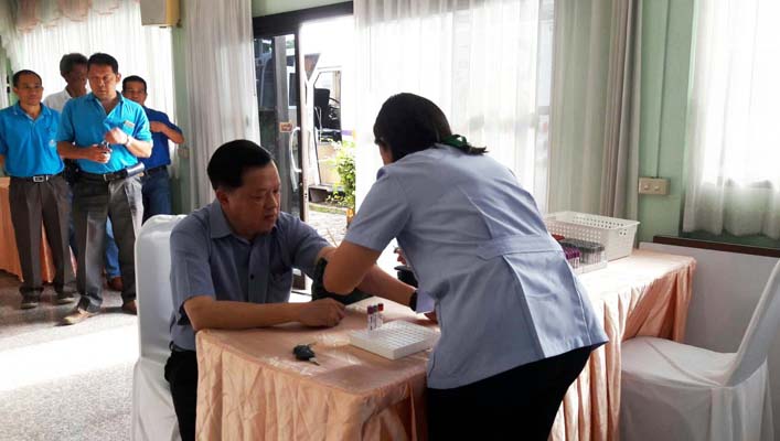 เมื่อวันที่ 29 สิงหาคม 2561 ณ อาคารรวมใจเทิดไท้องค์ภูมิพล 80 พรรษา สำนักงานทรัพยากรน้ำภาค 2 นายเอนก ชมพานิชย์ ผู้อำนวยการสำนักงานทรัพยากรน้ำภาค 2 พร้อมด้วยผู้อำนวยการส่วนงานต่างๆ ข้าราชการและเจ้าหน้าที่ เข้ารับการตรวจสุขภาพประจำปี 2561 โดยมี โรงพยาบาลเสาไห้เฉลิมพระเกียรติ 80 พรรษา จังหวัดสระบุรี เป็นผู้ดูแลสุขภาพของข้าราชการและเจ้าหน้าที่ของ สทภ.2 ในการตรวจสุขภาพดังกล่าว ประกอบด้วย การตรวจระดับน้ำตาลในเลือด วัดความดันโลหิต การ X-Ray ปอด การตรวจปัสสาวะ ตลอดจนให้คำปรึกษาในเรื่องสุขภาพต่างๆ เป็นต้น ทั้งนี้ เพื่อจะได้ทราบภาวะสุขภาพของบุคลากร ค้นหาความผิดปกติและแนวทางในการป้องกันแก้ไขปัญหาสุขภาพ ซึ่งเป็นการส่งเสริมให้บุคลากรมีการดูแลสุขภาพตนเองอย่างถูกต้อง เหมาะสม เป็นผู้มีสุขภาพดีและมีประสิทธิภาพในการปฏิบัติงานต่อไป