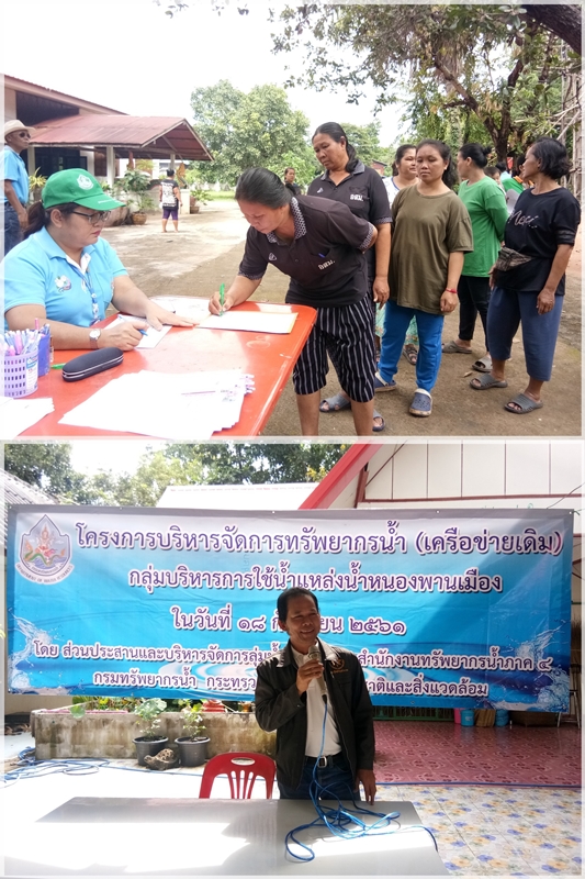 วันที่ ๑๘ กันยายน ๒๕๖๑ นายสาธิต สื่อประเสริฐสุข ผู้อำนวยการสำนักงานทรัพยากรน้ำภาค ๔ มอบหมายให้ส่วนประสานและบริหารจัดการลุ่มน้ำชีตอนล่าง จัดกิจกรรม โครงการบริหารจัดการทรัพยากรน้ำ (เครือข่ายเดิม) กลุ่มบริหารการใช้น้ำแหล่งน้ำหนองพานเมือง ณ บ้านกลาง หมู่ที่ ๖ ตำบลเหล่าไฮงาม อำเภอกุฉินารายณ์ จังหวัดกาฬสินธุ์