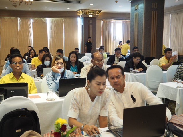 และฝึกปฏิบัติการสร้างฐานข้อมูลแหล่งน้ำด้วย GIS โดยมี นายธนภัทร สาธุพันธุ์ ตำแหน่ง นักวิเคราะห์นโยบายและแผนชำนาญการ สำนักงานทรัพยากรน้ำภาค ๗ เป็นวิทยากร นางสาวธนินี เขียวอยู่ นายธันยา จรูญสมาธิศักดิ์ และนางสาวนิภาพรรณ สุพรรณอาสน์ เจ้าหน้าที่ส่วนประสานและบริหารจัดการลุ่มน้ำเพชรบุรีและประจวบคีรีขันธ์ เป็นวิทยากรกลุ่ม ผู้เข้าร่วมประชุมประกอบด้วย ผู้อำนวยการกองช่าง นายช่างโยธา นักวิเคราะห์นโยบายและแผน จากองค์กรปกครองส่วนท้องถิ่นในจังหวัดเพชรบุรี จำนวน ๗๐ คน วิทยากรและเจ้าหน้าที่ จำนวน ๑๐ คน รวมทั้งสิ้น จำนวน ๘๐ คน