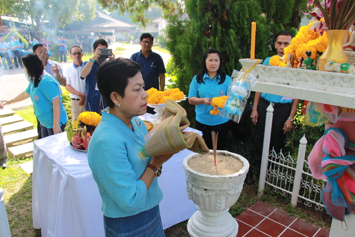 วันที่ 28 กันยายน 2561 เวลา 09.09 น.นายเสน่ห์ สาธุธรรม ผู้อำนวยการสำนักงานทรัพยากรน้ำภาค 1 ได้นำคณะผู้อำนวยการส่วนต่างๆ ข้าราชการ เจ้าหน้าที่สำนักงานทรัพยากรน้ำภาค 1 ได้นำเครื่องเซ่นไหว้ ธูป เทียน มาไหว้ศาลพระภูมิ เพื่อเป็นศิริมงคล เนื่องในวันสิ้นปีงบประมาณ และ มอบดอกกุหลาบเพื่อแสดงความยินดี แก่ผู้เกษียณอายุราชการ โดยผู้เกษียณอายุราชการได้กล่าวให้คำแนะนำให้พรแก่ข้าราชการเจ้าหน้าที่ที่ปฏิบัติงานในสำนักงานทรัพยากรน้ำภาค 1 ต่อไปเพื่อเป็นขวัญและกำลังใจในการปฏิบัติงาน
