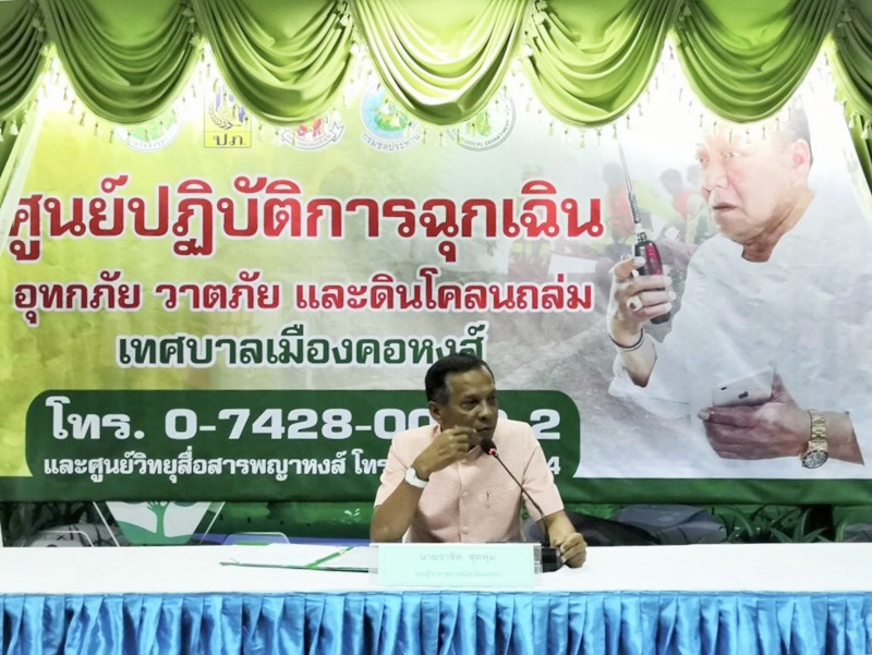 วันที่ 18 ตุลาคม 2561 เวลา 09.00 น. สำนักงานทรัพยากรน้ำภาค 8 โดยนายพัฒศักดิ์ แก้วชูแสง เจ้าพนักงานอุทกวิทยาอาวุโส ร่วมแถลงข่าวในพิธีเปิดศูนย์ปฏิบัติการฉุกเฉินประจำปี พ.ศ.2561 ณ สำนักงานเทศบาลเมืองคอหงส์ นายราชิต สุดพุ่ม รองผู้ว่าราชการจังหวัดสงขลา เป็นประธานฯ เพื่อเตรียมการป้องกันและแก้ไขปัญหาอุทกภัย น้ำท่วมฉับพลัน น้ำป่าไหลหลากและดินโคลนถล่ม เป็นการเตรียมความพร้อมช่วยเหลือผู้ประสบภัย ได้อย่างรวดเร็วและมีประสิทธิภาพ และเป็นการสร้างขวัญกำลังใจแก่ผู้ปฏิบัติงานในพื้นที่