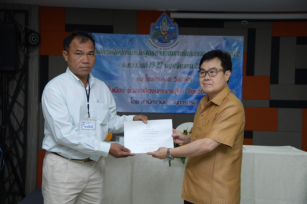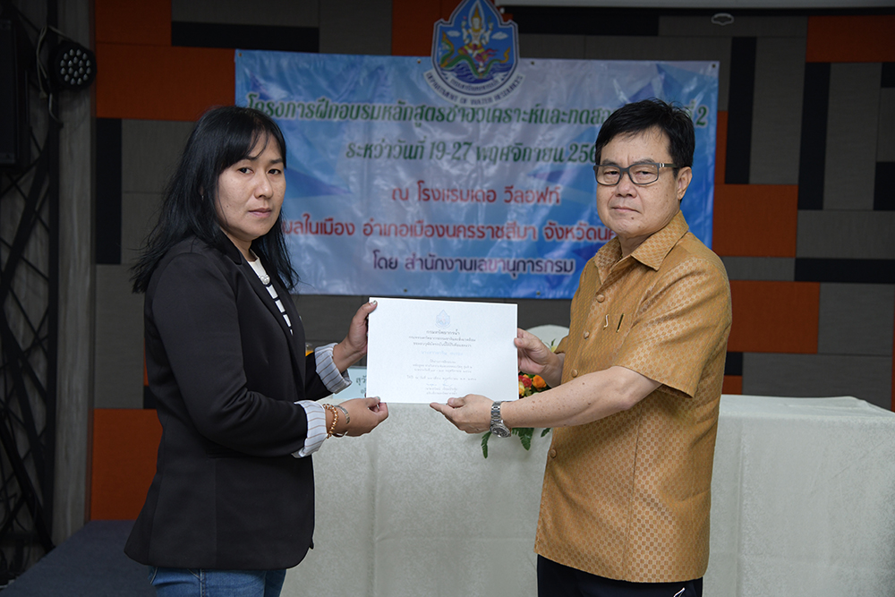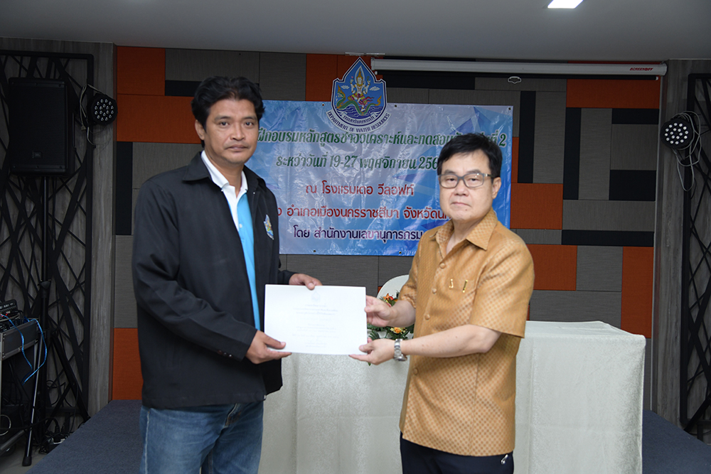 อธิบดีกรมทรัพยากรน้ำ มอบประกาศนียบัตร พร้อมกล่าวปิดการฝึกอบรมโครงการหลักสูตรช่างวิเคราะห์และทดสอบวัสดุ รุ่นที่ 2
