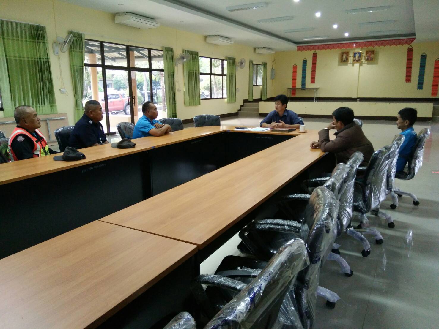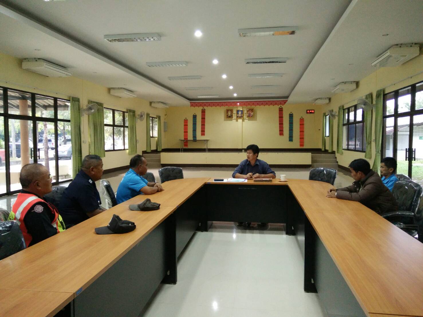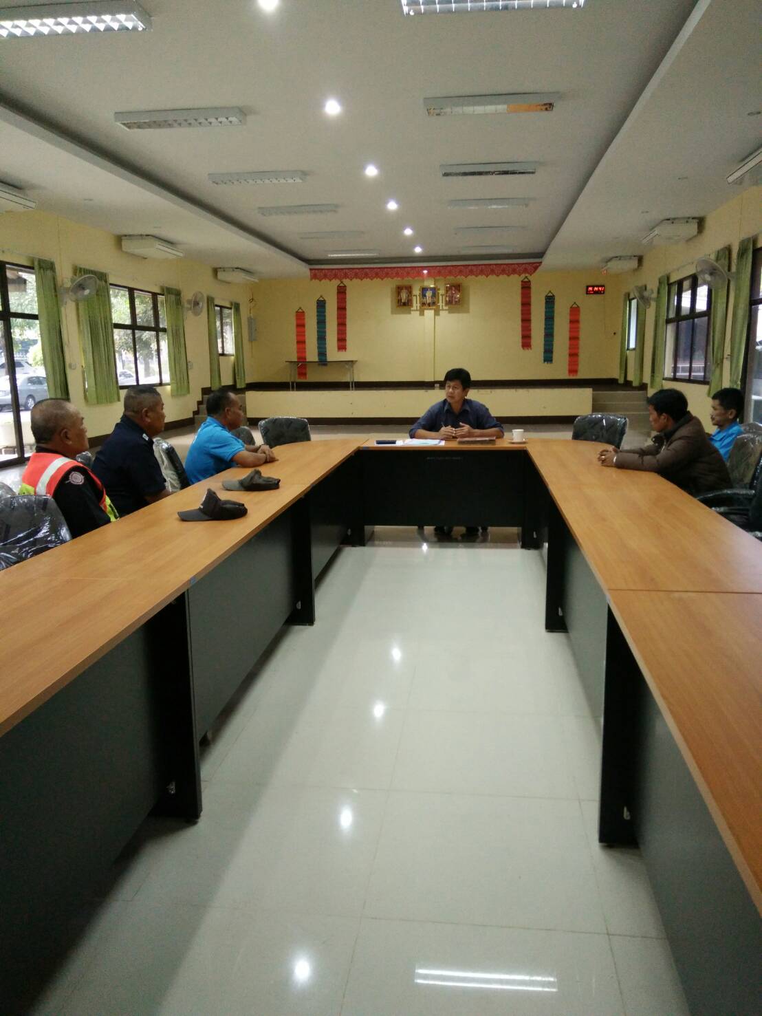 วันที่ 4 มกราคา 2562 ฝ่ายควบคุมยานพาหนะขนส่งและงานอาคารสถานที่ ส่วนอำนวยการสำนักงานทรัพยากรน้ำภาค 1 ได้ประชุมคนงานจ้างเหมา และเจ้าหน้าที่บริการรักษาความปลอดภัย สทภ.1 เพื่อย้ำเตือนการปฏิบัติงานให้อยู่ในระเบียบวินัยและมีประสิทธิภาพในการปฏิบัติหน้าที่โดยเคร่งครัด