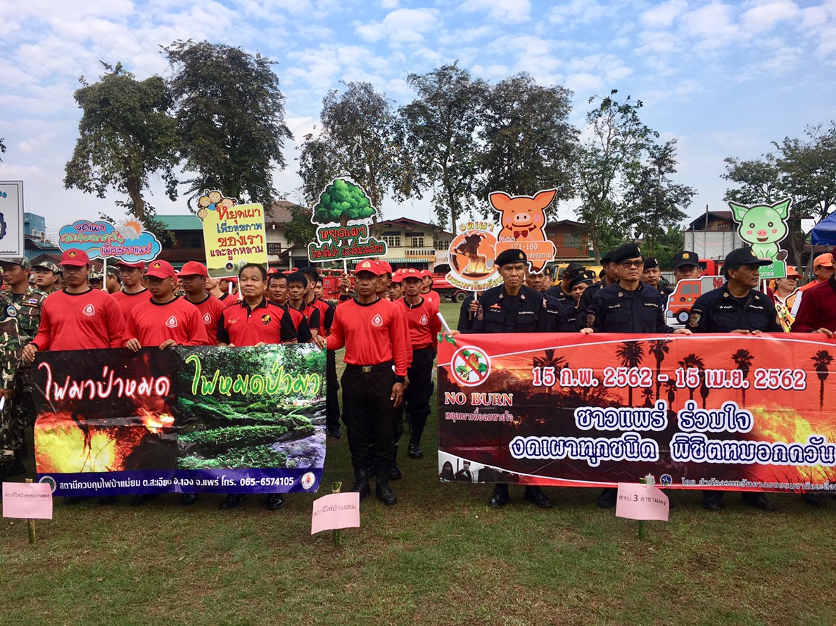 วันที่ 17 มกราคม 2562 เวลา 08.30 น. ว่าที่ ร.ต.ประพัฒน์ เดชหาญ ผู้อำนวยการส่วนประสานและบริหารจัดการลุ่มน้ำยม พร้อมด้วยเจ้าหน้าที่ ร่วมกิจกรรมรณรงค์ประชาสัมพันธ์เพื่อป้องกันและแก้ไขปัญหาไฟป่าและหมอกควัน ประจำปี 2562 ของจังหวัดแพร่ โดยมี นายพงศ์รัตน์ ภิรมย์รัตน์ ผู้ว่าราชการจังหวัดแพร่เป็นประธาน ณ สนามสถาบันประชารัฐพิทักษ์ป่า อ.เมืองแพร่ จ.แพร่ โดย สำนักงานทรัพยากรธรรมชาติและสิ่งแวดล้อมจังหวัดแพร่จัดขึ้นเพื่อสร้างการรับรู้และส่งเสริมการมีส่วนร่วมในการรณรงค์ปัญหามลพิษหมอกควัน ที่ส่งผลกระทบต่อทรัพยากรธรรมชาติ คุณภาพสิ่งแวดล้อม และสุขภาพอนามัยของประชาชน ซึ่งในปี 2562 จังหวัดแพร่ได้กำหนดให้วันที่ 15 กุมภาพันธ์ – 15 เมษายน 2562 เป็นช่วงวิกฤติหมอกควันห้ามเผาในทุกพื้นที่