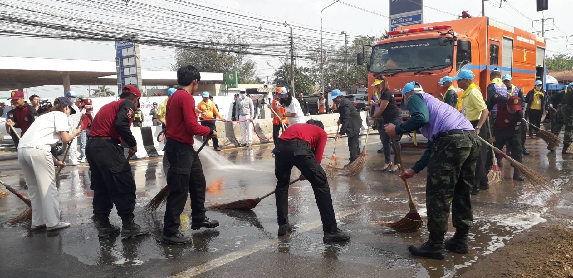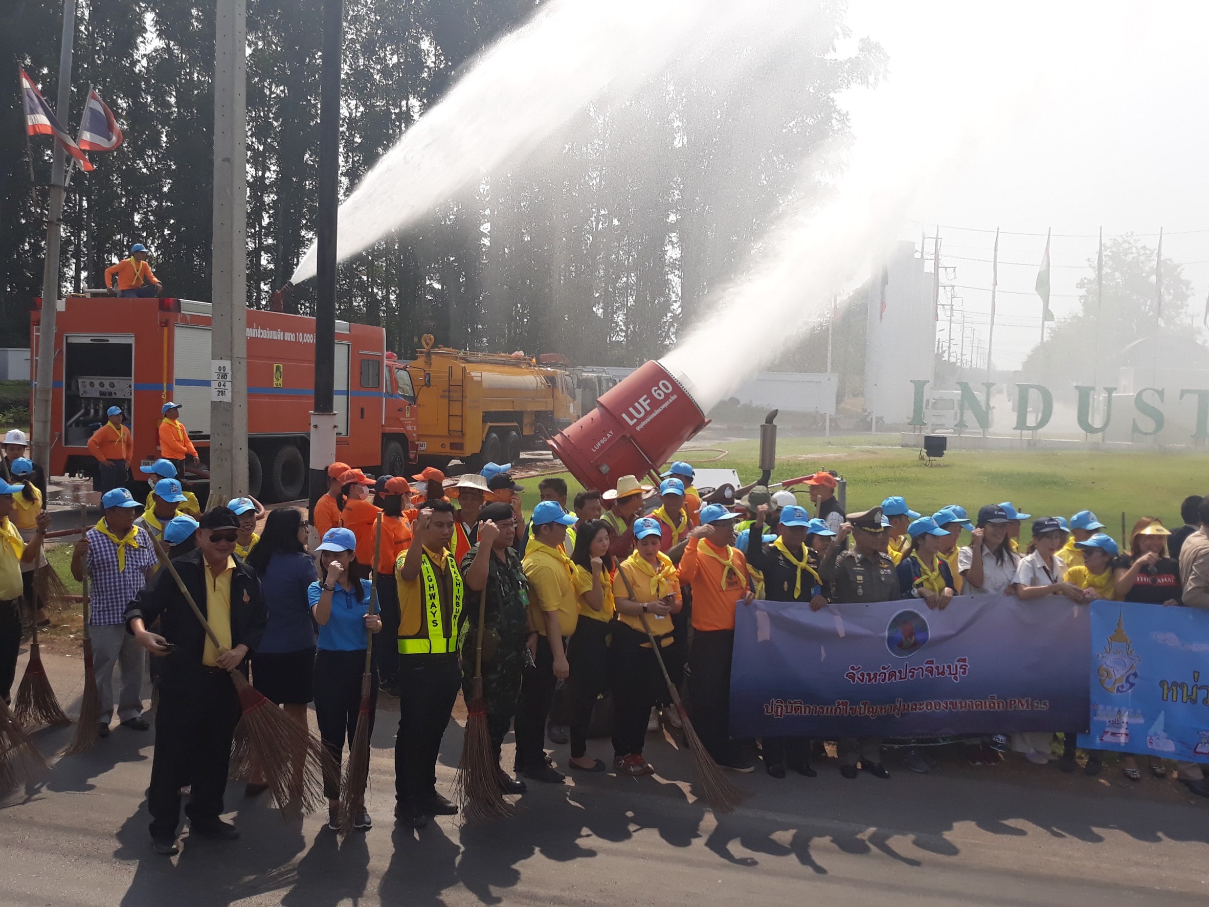 ในการนี้ นายพิบูลย์ หัตถกิจโกศล ผู้ว่าราชการจังหวัดปราจีนบุรี ได้สั่งการบูรณาการสนธิกำลังทุกภาคส่วน ประกอบด้วยหน่วยงานกระทรวงทรัพยากรธรรมชาติและสิ่งแวดล้อม ป้องกันและบรรเทาสาธารณภัย พลเรือน ทหาร ตำรวจ และภาคอุตสาหกรรม ระดมทำความสะอาดล้างพื้นถนน และฉีดพ่นละอองน้ำ เพื่อลดปริมาณฝุ่นละออง PM 2.5 บริเวณดังกล่าว โดยที่กรมควบคุมมลพิษได้รายงานสถานการณ์คุณภาพอากาศ ปรากฏว่าดัชนีคุณภาพอากาศวันนี้มีค่าเท่ากับ 167 มีค่าสูงเกินกว่าค่าเทียบเท่ามาตรฐานคุณภาพอากาศในบรรยากาศ ซึ่งโดยทั่วไปมีค่าเท่ากับ 100 และตรวจพบค่าสารมลพิษทางอากาศในช่วงที่ผ่านมามีค่าเกินมาตรฐาน ได้แก่ ฝุ่นละออง ขนาดไม่เกิน 2.5 ไมครอน (PM 2.5) ตรวจพบค่าระหว่าง 31 - 74 ไมโครกรัมต่อลูกบาศก์เมตร (µg/m3) จึงรีบดำเนินการแก้ปัญหาเบื้องต้นด้วยการฉีดพ่นละอองน้ำ ล้างถนน และตรวจวัดการปล่อยมลพิษของรถบรรทุกที่ใช้งานวิ่งผ่านบริเวณดังกล่าวไปพร้อมกัน