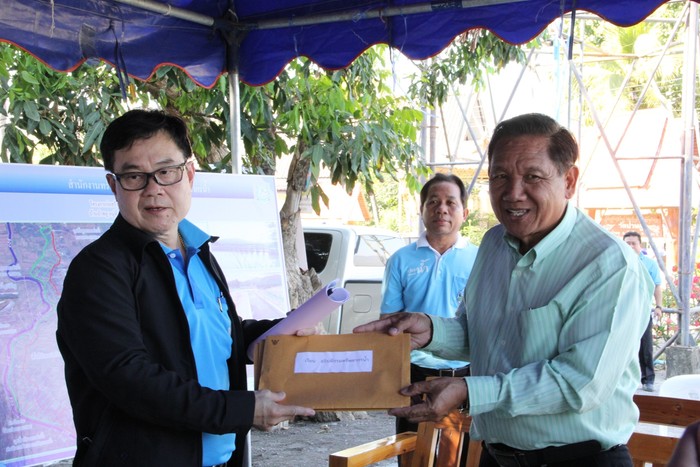 สทภ.1 อธิบดีกรมทรัพยากรน้ำ ตรวจเยี่ยมโครงการก่อสร้างฝายน้ำล้นห้วยตั้ง