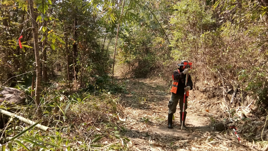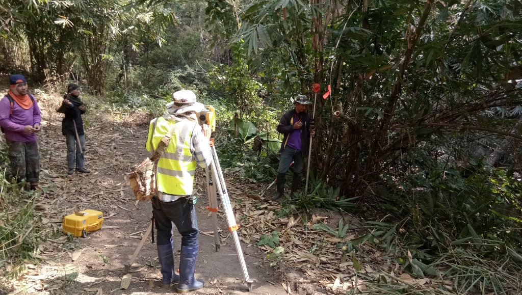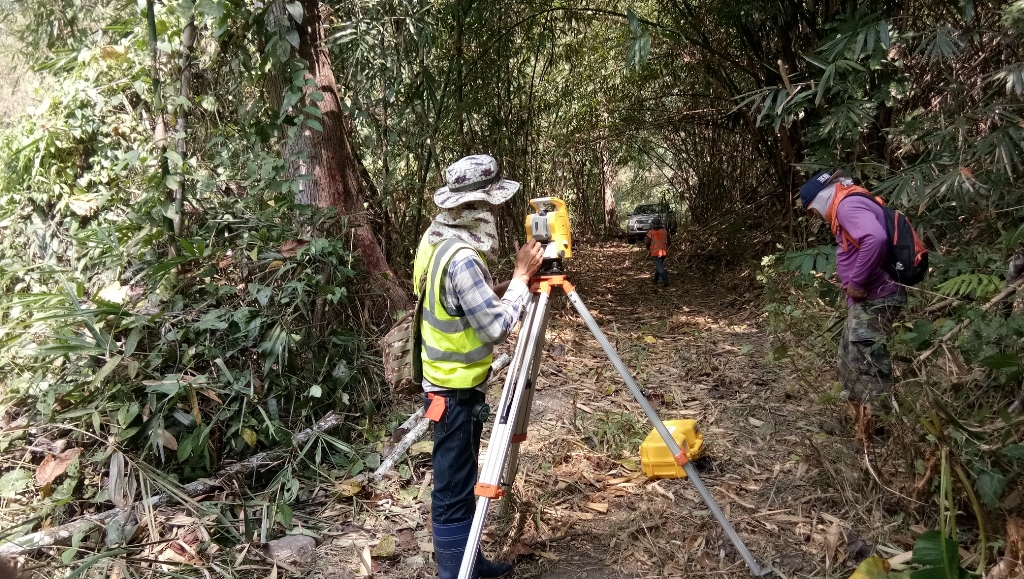 สทภ.7 สำรวจเพื่อวางแนวท่อส่งน้ำจากฝายแม่ปลาสร้อย - บ้านปากนาสวน ต.นาสวน อ.ศรีสวัสดิ์ จ.กาญจนบุรี