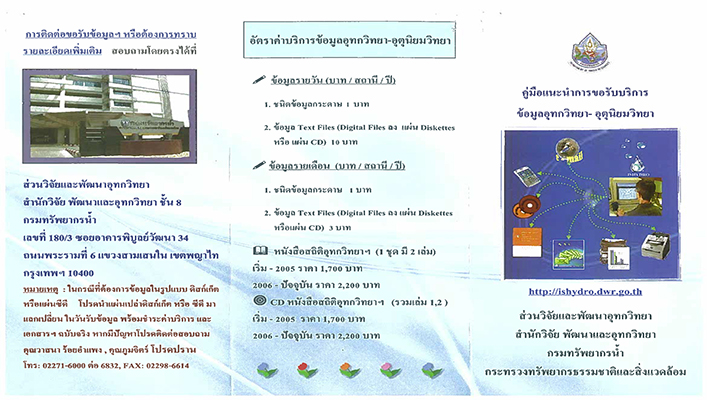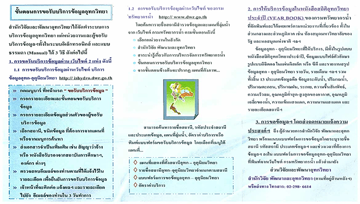 สำนักวิจัย พัฒนาและอุทกวิทยา ขอเผยแพร่ข้อมูลสถิติอุทกวิทยา ประจำปี พ.ศ.2559 (ค.ศ.2016) เพื่อให้ผู้สนใจได้ใช้ประโยชน์ สามารถติดต่อได้ที่ส่วนวิจัยและพัฒนาอุทกวิทยา สำนักวิจัย พัฒนาและอุทกวิทยา ชั้น 8 อาคารกรมทรัพยากรน้ำ รายละเอียดตามเอกสาร ที่แนบ
