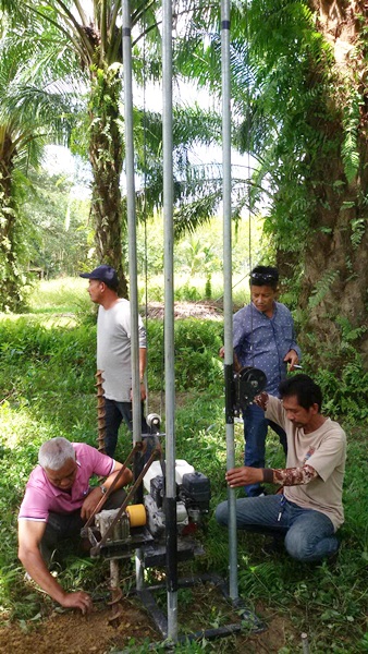 ระหว่างวันที่ 11 – 12 กุมภาพันธ์ 2562 ส่วนวิชาการ สำนักงานทรัพยากรน้ำภาค 8 ลงพื้นที่เจาะสำรวจชั้นดินฐานรากประกอบการออกแบบโครงการพัฒนาแหล่งน้ำในพื้นที่จังหวัดตรัง และจังหวัดพัทลุง เพื่อเก็บตัวอย่างดินที่ได้ในพื้นที่ที่จะก่อสร้าง โครงการมาวิเคราะห์จำแนกประเภทของดินในห้องปฏิบัติการ โดยการเจาะชั้นดินด้วยวิธี Hand Auger ซึ่งใช้แรงคนในการเจาะ ความลึกในการเจาะประมาณ 4 – 5 เมตร ขึ้นอยู่กับลักษณะของโครงการพร้อมทั้งเก็บตัวอย่างของดินที่มีการเปลี่ยนแปลงในแต่ละชั้นนำมาวิเคราะห์ในห้องปฏิบัติการ ทั้งนี้ได้นำเครื่องเจาะที่ส่วนวิชาการผลิตขึ้นเองนำไปทดลองใช้เทียบกับการเจาะด้วยวิธี Hand Auger เพื่อเปรียบเทียบความสามารถในการเจาะดินทั้งสองวิธีด้วย
