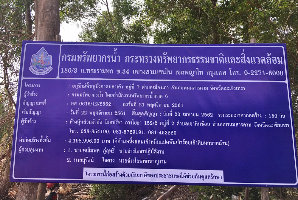 เมื่อวันที่ 1 มีนาคม 2562 นายสมฤทธิ์ วิไลพรรัตนา ผู้อำนวยการสำนักงานทรัพยากรน้ำภาค 6 มอบหมายให้ ผู้อำนวยการส่วนแผนงานและประเมินผล ผู้อำนวยการส่วนอุทกวิทยา ผู้อำนวยการส่วนประสานและบริหารจัดการลุ่มน้ำบางปะกง ผู้อำนวยการประสานและบริหารจัดการลุ่มน้ำชายฝั่งทะเลตะวันออกและเจ้าหน้าที่ส่วนพัฒนาและฟื้นฟูแหล่งน้ำ นำคณะหัวหน้าผู้ตรวจราชการกรมทรัพยากรน้ำ (นางสาวอมรรัตน์ พุ่มศรีพักตร์) ลงพื้นที่ตรวจติดตามการดำเนินงานโครงการอนุรักษ์ฟื้นฟูบึงลาดปลาเค้า หมู่ที่ 7 ตำบลเมืองเก่า อำเภอพนมสารคาม จังหวัดฉะเชิงเทรา งบประมาณปี 2562 ปัจจุบันมีผลการดำเนินงาน 13% ความจุ 76,750 ลบ.ม. พื้นที่รับประโยชน์ 138 ไร่ ประชาชน 13 ครัวเรือน ตามแผนตรวจราชการกรมทรัพยากรน้ำ ประจำปีงบประมาณ 2562 รอบที่ 1 ณ จังหวัดในเขตพื้นที่รับผิดชอบสำนักงานทรัพยากรน้ำภาค 6 โดยมีสมาชิกองค์การบริหารส่วนตำบลเมืองเก่า ผู้ใหญ่บ้าน หมู่ที่ 7 และกลุ่มผู้ใช้น้ำร่วมให้การต้อนรับพร้อมให้ข้อมูล