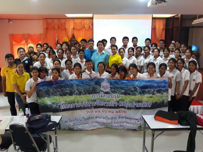 วันจันทร์ที่ ๑๑ มีนาคม ๒๕๖๒ นายสาธิต รัตนสิงห์ ผู้ อำนวยการสำนักงานทรัพยากรน้ำภาค ๑๐ มอบหมายให้ส่วนประสานและบริหารจัดการลุ่มน้ำตาปี สำนักงานทรัพยากรน้ำภาค ๑๐ จัดโครงการบริหารจัดการน้ำ (เครือข่ายเดิม) กลุ่มเครือข่ายชมรมอนุรักษ์สิ่งแวดล้อมโรงเรียนเวียงสระ ณ โรงเรียนเวียงสระ อำเภอเวียงสระ จังหวัดสุราษฎร์ธานี ผู้ เข้าร่วมโครงการ ได้แก่ สมาชิกชมรมอนุรักษ์สิ่งแวดล้อมโรงเรียนเวียงสระ และอาจารย์ จำนวน ๗๑ คน โดยมีวัตถุประสงค์ เพื่อสนับสนุนกลุ่มเครือข่ายให้มีการบริหารจัดการทรัพยากรน้ำรวมทั้งเพิ่มความเข้มแข็งของกลุ่มเครือข่าย และเพื่อสนับสนุนกิจกรรมการดำเนินงานของกลุ่มเครือข่ายให้มีการบริหารจัดการกลุ่มเครือข่ายอย่างต่อเนื่อง ในการนี้ได้ให้ความรู้ในการเตรียมความพร้อมการรับรู้ภัยพิบัติและการเฝ้าระวัง การบริหารจัดการทรัพยากรน้ำเป็นระบบลุ่มน้ำ และแบ่งกลุ่มทำกิจกรรมฐานการเรียนรู้ต่างๆ ได้แก่ ฐานการอนุรักษ์ทรัพยากรน้ำ ฐานการเตือนภัยล่วงหน้า และฐานการคัดแยกขยะ