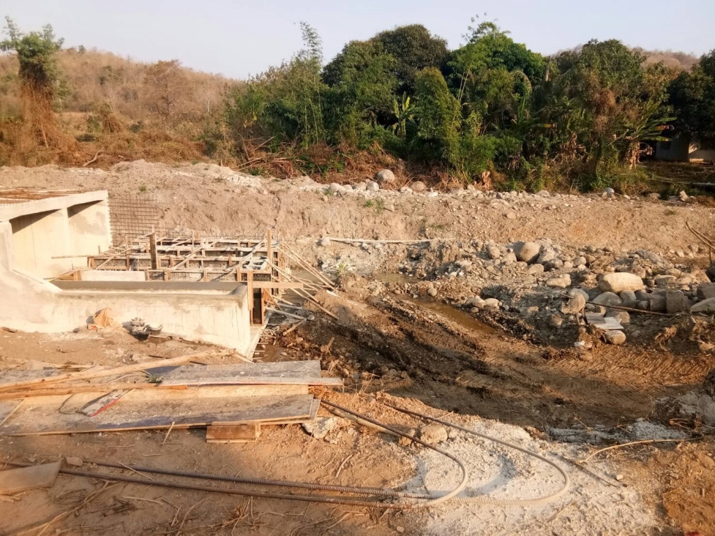 สทภ.7 ลงพื้นที่กำกับงานโครงการก่อสร้างฝายน้ำล้นลำห้วยพุกรูด บ้านไทยประจัน หมู่ที่ 5 ตำบลยางหัก อำเภอปากท่อ จังหวัดราชบุรี