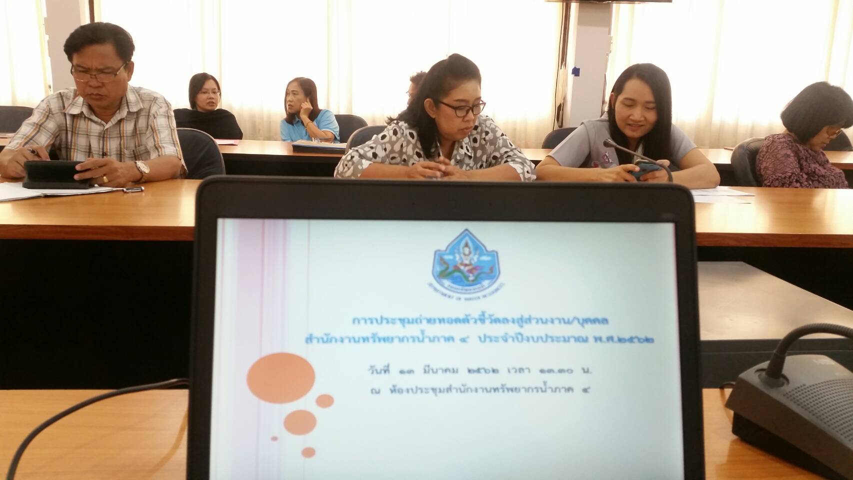 วันที่ ๑๓ มีนาคม ๒๕๖๒ เวลา ๑๓.๓๐ น. สำนักงานทรัพยากรน้ำภาค ๔ จัดประชุมถ่ายทอดตัวชี้วัดลงสู่ส่วนงาน ของสำนักงานทรัพยากรน้ำภาค ๔ ประจำปีงบประมาณ พ.ศ. ๒๕๖๒ ณ ห้องประชุมสำนักงานทรัพยากรน้ำภาค ๔ อำเภอเมือง จังหวัดขอนแก่น โดยมีนายสาธิต สื่อประเสริฐสุข ผู้อำนวยการสำนักงานทรัพยากรน้ำภาค ๔ เป็นประธานการประชุม และมีผู้อำนวยการส่วนงานและเจ้าหน้าที่เข้าร่วมประชุม รวมทั้งสิ้น ๒๐ คน