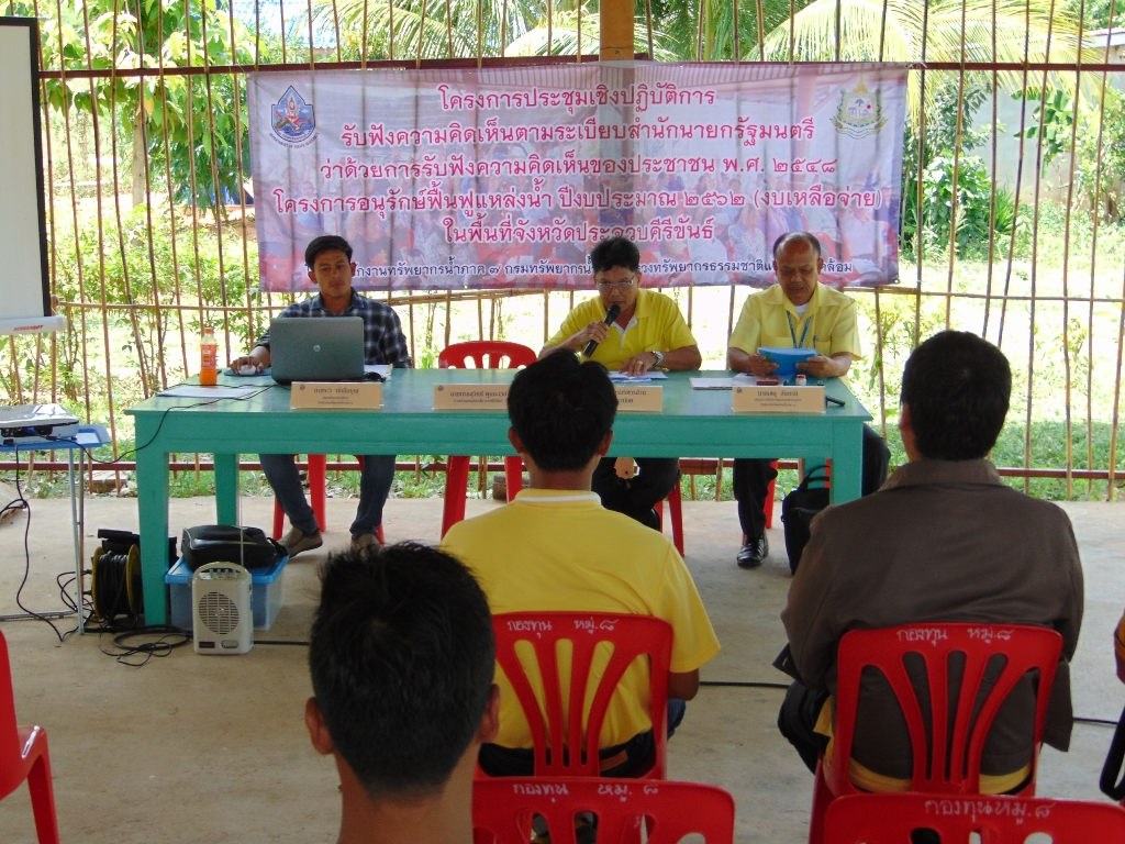 สทภ.7 จัดประชุมเชิงปฏิบัติการรับฟังความคิดเห็นตามระเบียบสำนักนายกรัฐมนตรี ว่าด้วยการรับฟังความคิดเห็นของประชาชน พ.ศ. 2548 โครงการอนุรักษ์ฟื้นฟูแหล่งน้ำ ประจำปีงบประมาณ 2562 (งบเหลือจ่าย) โครงการอนุรักษ์ฟื้นฟูแหล่งน้ำลำห้วยตาเมฆ จังหวัดประจวบคีรีขันธ์