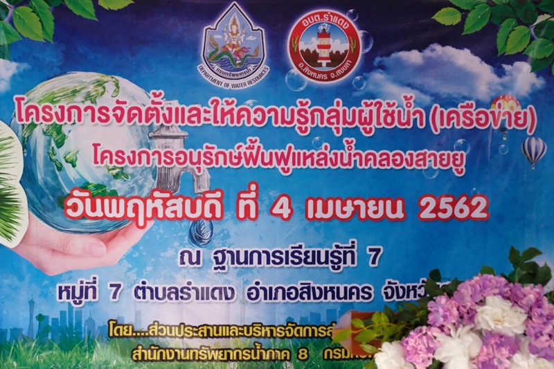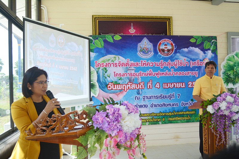 4 เมษายน 2562 นางกศิรินทร์ พลนาค ผู้อำนวยการส่วนประสานฯ ลุ่มน้ำทะเลสาบสงขลา พร้อมเจ้าหน้าที่ ดำเนินการจัดโครงการจัดตั้งและให้ความรู้กลุ่มผู้ใช้น้ำ (เครือข่าย) โครงการอนุรักษ์พื้นฟูแหล่งน้ำคลองสายยู ณ ฐานเรียนรู้ที่ 7 ม.7 ต.รำแดง อ.สิงหนคร จ.สงขลา โดยมีนายอุดม ทักขระ นายกองค์การบริหารส่วนตำบลรำแดง เป็นประธานเปิดโครงการฯ ทั้งนี้ โครงการดังกล่าวมีวัตถุประสงค์ เพื่อให้กลุ่มผู้ใช้น้ำได้เข้าไปมีส่วนร่วมในการดูแลบำรุงรักษาแหล่งน้ำ ตลอดจนสร้างความตระหนัก ให้เห็นความสำคัญในการเข้าไปดูแล บำรุง รักษาแหล่งน้ำได้ด้วยตนเองอย่างมีประสิทธิภาพ และเกิดประโยชน์สูงสุดทั้งต่อตนเองและชุมชน