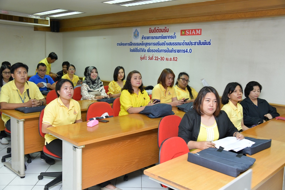 กรมทรัพยากรน้ำจัดโครงการฝึกอบรมหลักสูตรการเสริมสร้างสมรรถนะด้านประชาสัมพันธ์ โดยใช้สื่อดิจิทัลเพื่อรองรับการเป็นข้าราชการ 4.0 รุ่นที่ 1 ระหว่างวันที่ 22-30 เมษายน 2562 โดยมีนายกิตติ จันทร์ส่อง เลขานุการกรม เป็นผู้กล่าวต้อนรับผู้ฝึกอบรมและถ่ายทอดเจตนารมณ์เพื่อให้เกิดการประชาสัมพันธ์ที่มีประสิทธิภาพ ทั้งนี้มีเจ้าหน้าที่จากทั้งส่วนกลางและสำนักงานทรัพยากรน้ำภาค 1-11 เข้าร่วมอบรม ณ โรงเรียนสยามคอมพิวเตอร์และภาษา สาขาอนุสาวรีย์ชัยสมรภูมิ