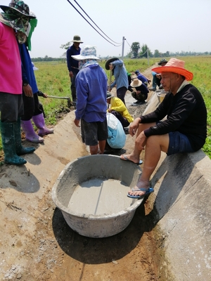 วันที่ 24 เมษายน 2562 สทภ.1 สปล.ปิงตอนบน กลุ่มผู้ใช้น้ำฝายเหมืองหลวง (เหมืองนาทราย) ต.สบเตี๊ยะ อ.จอมทอง จ.เชียงใหม่ “ จัดกิจกรรมซ่อมแซมลำเหมืองนาทราย ” กลุ่มผู้ใช้น้ำฝายเหมืองหลวง(เหมืองนาทราย) จัดกิจกรรมการซ่อมแซม ลำเหมืองนาทราย ตามโครงการสนับสนุนเครือข่ายเดิม ลุ่มน้ำปิงตอนบน ในโครงการดังกล่าว กลุ่มผู้ใช้น้ำเหมืองนาทรายได้แบ่งงานกันทำกิจกรรม 2 กลุ่ม กลุ่มที่ 1 ได้ดำเนินการซ่อมแซมโดยการก่อสร้าง เทพื้นคอนกรีตลำเหมืองกว้าง 0.60 เมตร แล้วก่อคอนกรีตบล็อก สูง 0.60 เมตร ความยาวประมาณ 40 เมตร เป็นรูปตัวแอล ตามภาพรูปตัดขวาง ของลำเหมือง กลุ่มที่ 2 ขุดลอกตะกอนทรายในลำเหมืองและซ่อมแซมพื้นดาดคอนกรีตลำเหมืองที่แตกเสียหายโดยการดาดคอนกรีทับรอยแตกเสียหาย วัตถุประสงค์เพื่อต้องการลดการรั่วซึมของน้ำในลำเหมือง และเพิ่มประสิทธิภาพการไหลของน้ำ อีกทั้งยังป้องกันตลิ่งที่พังเสียหายจากกรณีน้ำหลากในพื้นที่ กิจกรรมดังกล่าวทางกลุ่มฯ ได้ร่วมแรง ร่วมใจ และทุนทรัพย์จากเงินกองทุนกลุ่ม ดำเนินการจนแล้วเสร็จ มีผู้ร่วมกิจกรรมในครั้ง 93 คน
