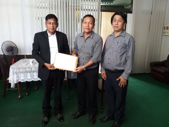 นายสาธิต รัตนสิงห์ ผู้อำนวยการสำนักงานทรัพยากรน้ำภาค 10 ให้การต้อนรับและรับหนังสือจากนายเติม จันทร์ส่งแสง นากยกองค์การบริหารส่วนตำบลพรุดินนา อ.คลองท่อม จ.กระบี่ ซึ่งได้มายื่นขอรับการสนับสนุนในการแก้ไขปัญหาน้ำเพื่อการอุปโภคบริโภค โดยต้องการให้ กรมทรัพยากรน้ำ สทภ.10 พิจารณาการสร้างฝาย คสล.ขนาดเล็ก เพิ่มเติมในพื้นที่ตำบลพรุดินนา เพื่อแก้ปัญหาภัยแล้ง และชะลอการไหลหลากของน้ำในช่วงฤดูฝน พร้อมก่อสร้างระบบกระจายน้ำด้วยพลังงานแสดงอาทิตย์