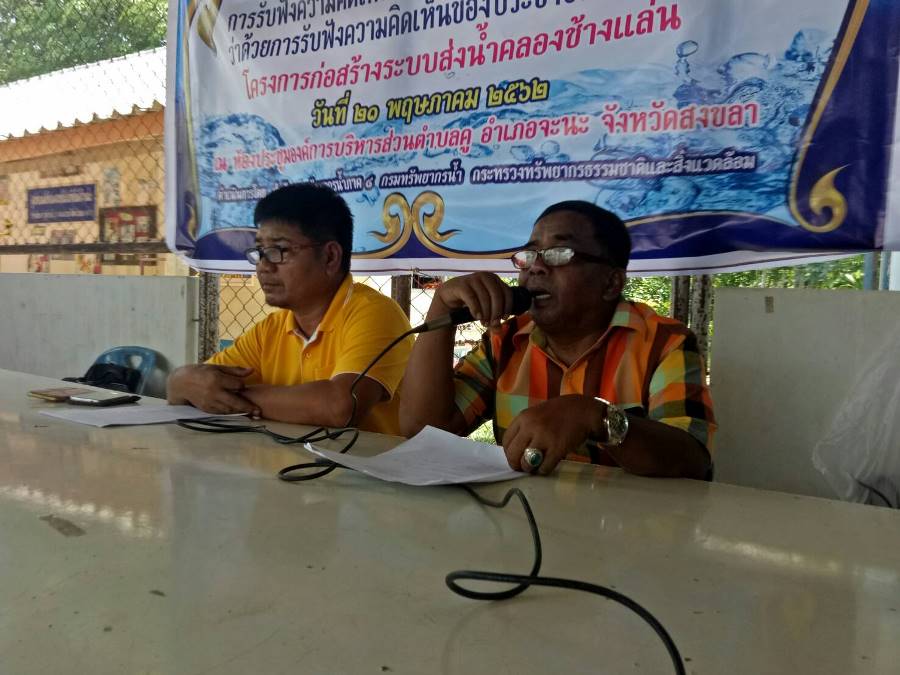 สำนักงานทรัพยากรน้ำภาค 8 โดยส่วนประสานและบริหารจัดการลุ่มน้ำภาคใต้ฝั่งตะวันออก ส่วนที่ 2 และส่วนพัฒนาและฟื้นฟูแหล่งน้ำ ดำเนินการจัดโครงการประชุมเชิงปฏิบัติการรับฟังความคิดเห็นตามระเบียบสำนักนายกรัฐมนตรีว่าด้วยการรับฟังความคิดเห็นของประชาชน พ.ศ.2548 ต่อโครงการก่อสร้างระบบส่งน้ำคลองช้างแล่น ตำบลคู อำเภอจะนะ จังหวัดสงขลา ณ ห้องประชุมองค์การบริหารส่วนตำบลคู เมื่อวันที่ 21 พฤษภาคม 2562 ที่ผ่านมา มีผู้เข้าร่วมประชุมฯประกอบด้วยเจ้าหน้าที่องค์การบริหารส่วนตำบลคู ผู้แทนชุมชน ประชาชนผู้มีส่วนได้ส่วนเสียในพื้นที่ก่อสร้างโครงการก่อสร้างระบบส่งน้ำคลองช้างแล่น เจ้าหน้าที่ และวิทยากร เข้ามามีส่วนร่วมในการรับฟังความคิดเห็น รวมจำนวน 62 คน มีมติเห็นชอบให้สำนักงานทรัพยากรน้ำภาค 8 ดำเนินการก่อสร้างโครงการก่อสร้างระบบส่งน้ำคลองช้างแล่น เพื่อประชาชนในพื้นที่ตำบลคู ได้ใช้ประโยชน์ต่อไป