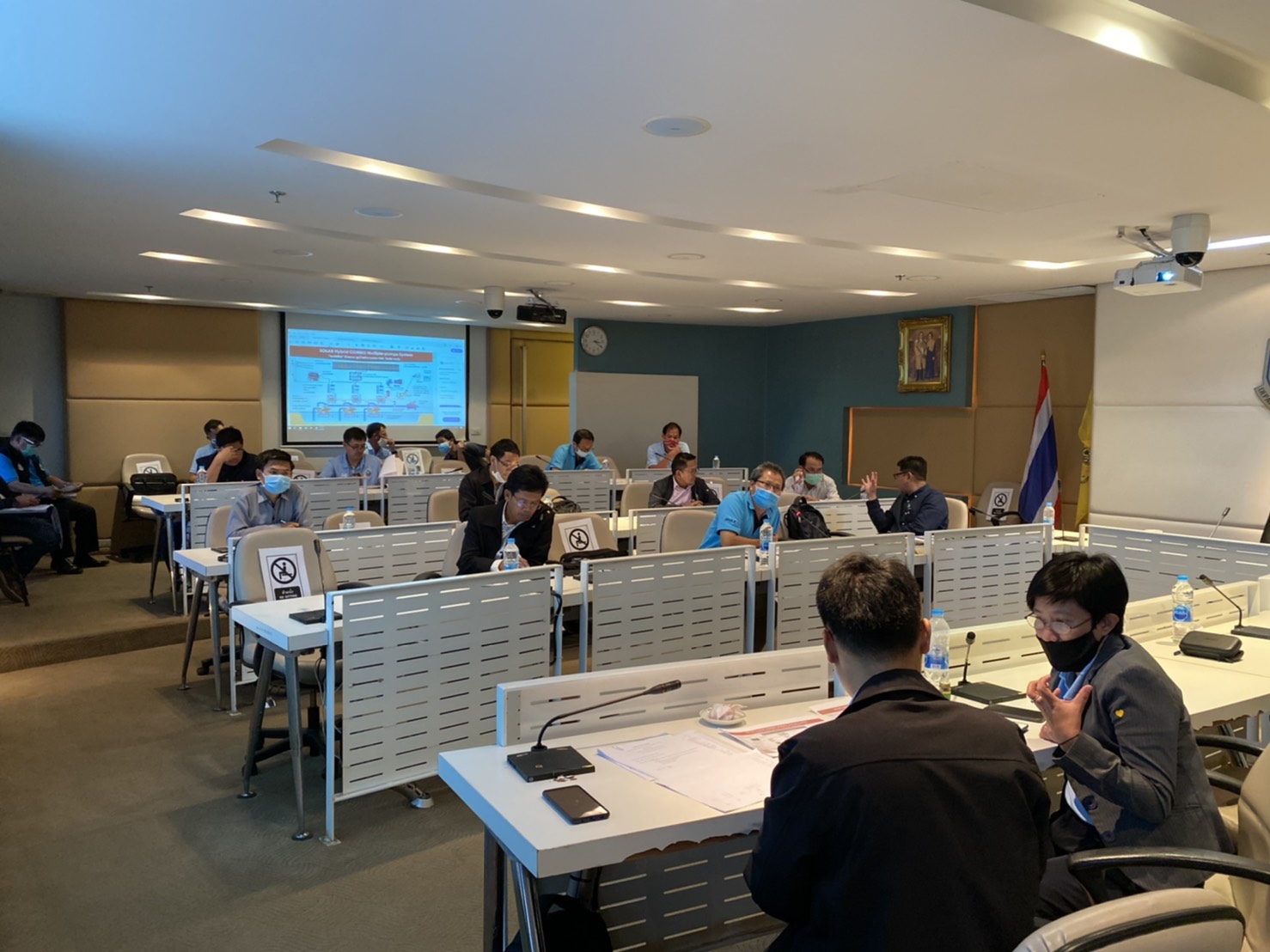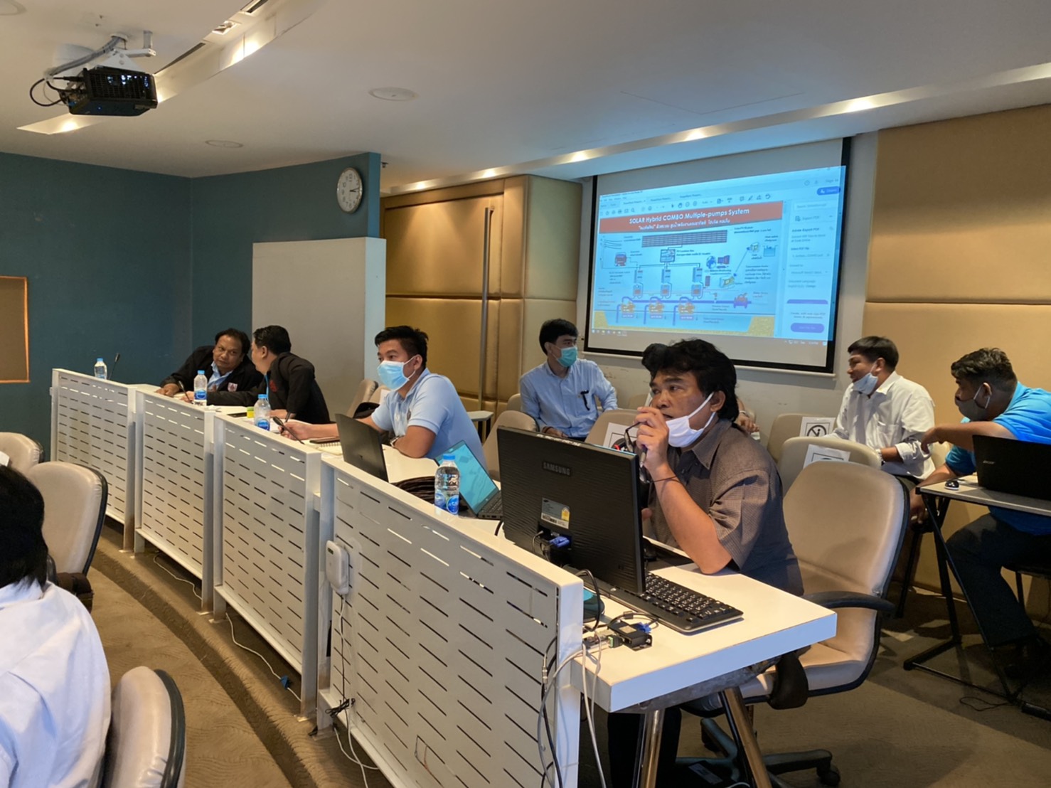 วันที่ 15 พฤษภาคม 2563 นายภาดล ถาวรกฤชรัตน์ อธิบดีกรมทรัพยากรน้ำ มีบัญชาเรียก จนท. ที่ปฏิบัติงานด้านการสำรวจและออกแบบ ของ สทภ 2-11 เข้าประชุม และมอบหมายให้นายนิทัศน์ สุดดีพงษ์ ผู้อำนวยการสำนักงานทรัพยากรน้ำภาค1 เข้าให้ความรู้แก่ จนท. สทภ 2-11 ในการวางโครงการระบบกระจายน้ำด้วยพลังงานแสงอาทิตย์ แบบไฮบริด คอมโบ ณ ห้องประชุมสายชล ชั้น 9 กรมทรัพยากรน้ำ ซึ่งเป็นการให้แนวทางโดยยกตัวอย่างงานของ สทภ 1 ในการดำเนินงานสำรวจความเหมาะสม การวางโครงการ และการประมาณราคาเบื้องต้น เพื่อเสนอขอรับการสนับสนุนงบประมาณ ทั้งนี้ ผอ. สทภ 1 ได้เชิญวิทยากร ผู้มีความชำนาญ ในด้านระบบโซล่าเซลสูบน้ำแบบไฮบริด คอมโบ ที่ดำเนินงานใน สทภ 1 มาให้ความรู้แก่ จนท. ของกรมทรัพยากรน้ำพร้อมไปด้วย โดย อธิบดีกรมทรัพยากรน้ำคาดหวังให้ จนท. ที่เข้าร่วมประชุมในวันนี้กลับไปใช้ความรู้ที่ได้รับให้เกิดประโยชน์แก่พี่น้องประชาชนในพื้นที่ ต่อไป